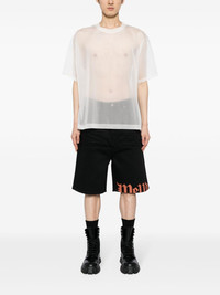logo-print bermuda shorts Highlights - Black/light red - Cotton blend - Logo print at the leg - Mid-rise - Concealed fly and button fastening - Belt loops - Classic five pockets - Straight hem - Knee-length Imported Composition Cotton 72%, Polyester 26%, Cellulose Acetate 2% SIZE & FIT Model measurements Height 6 ft 2 in(1.87 m) Bust/Chest 34.25 in(87 cm) Hips 36.22 in(92 cm) Waist 29.52 in(75 cm) FittingInformation Designed with a wide leg, offering a loose and roomy fit Made from a midweight non-stretch fabric This piece fits true to size – take your usual size