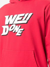 logo-print cotton hoodie Exhibiting a bold logo print to its front, this We11done cotton hoodie is produced in a bright red hue. The brand's street-style aesthetic is showcased in the garment's oversized fit and dropped shoulder silhouette. Highlights - Red - Cotton - Logo print at the chest - Logo patch at the sleeve - Drop shoulder - Long sleeves - Classic hood - Front pouch pocket - When buying this unisex item, keep in mind that it is graded in standard men's sizing. Imported Composition Cotton 100% SIZE & FIT Model measurements Height 5 ft 10 in(1.78 m) Bust/Chest 33.07 in(84 cm) Hips 35.82 in(91 cm) Waist 25.98 in(66 cm) FittingInformation This piece is unisex. Please take care when selecting your size Cut for a relaxed fit for both men and women Made with a mid-weight fabric Washing instructions Hand Wash