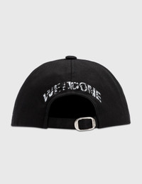 - We11done - WE11DONE Logo Stamp Cap - 6-panel construction - Logo print at front, side, and back - Embroidered eyelets - Adjustable back strap - Curved brim - Color: Black - Material: 100% Cotton - See more - Caps - , - Hats - and - Accessories SIZING Approximate dimensions: - Brim Width: 7cm - Crown Height: 16cm - Circumference: 58cm