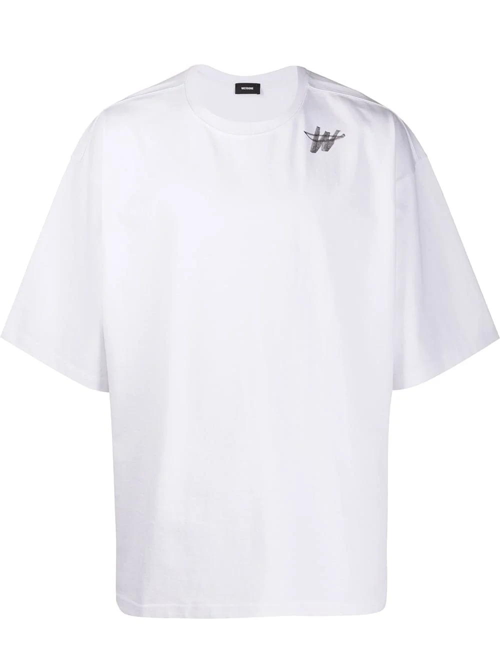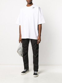 logo-print oversized T-shirt white/black cotton logo print to the side crew neck drop shoulder short sleeves straight hem Imported Composition Cotton 100% SIZE & FIT Model measurements Height 5 ft 11 in(1.8 m) Bust/Chest 31.49 in(80 cm) Hips 35.03 in(89 cm) Waist 23.62 in(60 cm) Measurement CHEST 51.96 in(132 cm) SLEEVE LENGTH 11.02 in(28 cm) LENGTH 29.92 in(76 cm) Shoulder Width 23.62 in(60 cm) FittingInformation This piece fits true to size. We recommend you get your regular size Cut for an oversized fit Made with a mid-weight fabric