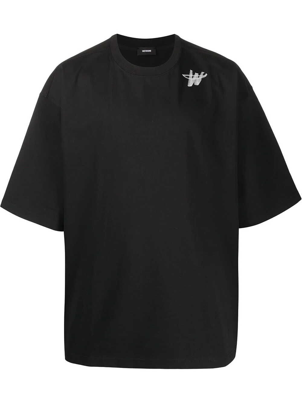 logo-print oversized T-shirt black/white cotton logo print to the side crew neck short sleeves drop shoulder straight hem Imported Composition Cotton 100% SIZE & FIT Model measurements Height 5 ft 11 in(1.8 m) Bust/Chest 31.49 in(80 cm) Hips 35.03 in(89 cm) Waist 23.62 in(60 cm) Measurement BUST 47.24 in(120 cm) FittingInformation This piece fits true to size. We recommend you get your regular size Cut for an oversized fit Made with a mid-weight fabric Washing instructions Machine Wash
