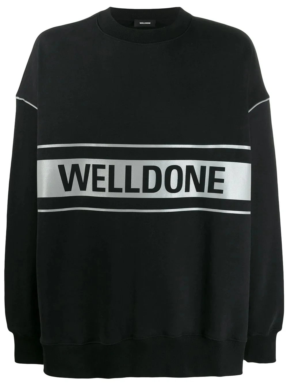 logo print sweatshirt Black cotton logo print sweatshirt from We11Done featuring a ribbed crew neck, a central printed logo, long sleeves, an oversized fit and a ribbed hem and cuffs. Imported Composition Cotton 100% SIZE & FIT Model measurements Height 6 ft 1 in(1.86 m) Bust/Chest 35.43 in(90 cm) Hips 35.43 in(90 cm) Waist 29.92 in(76 cm) FittingInformation This is a one size item Cut for a loose fit Washing instructions Dry Clean Only