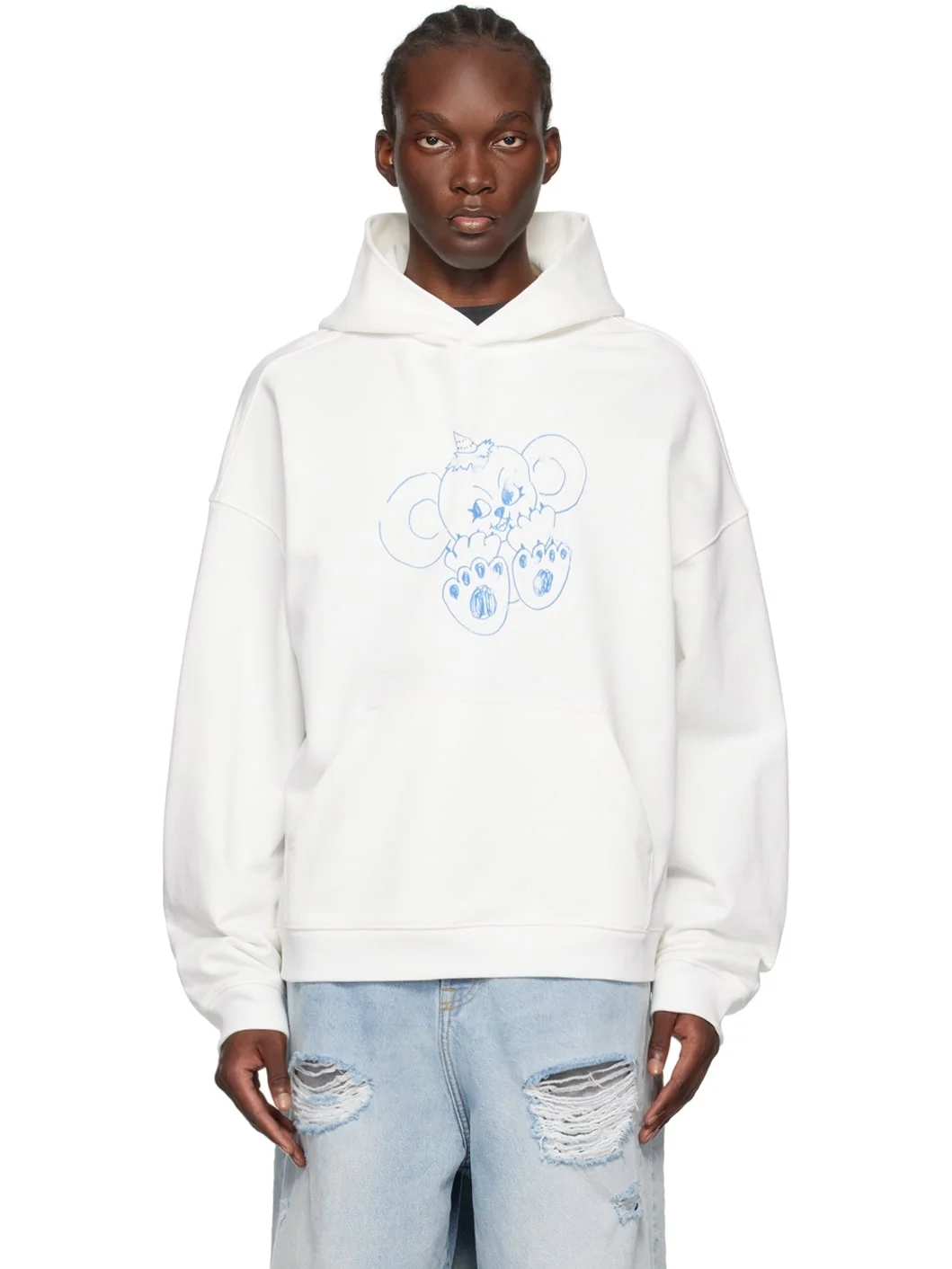 French terry hoodie. · Graphic printed at front · Rhinestone appliques at front · Kangaroo pocket · Rib knit hem and cuffs · Dropped shoulders Supplier color: Ivory