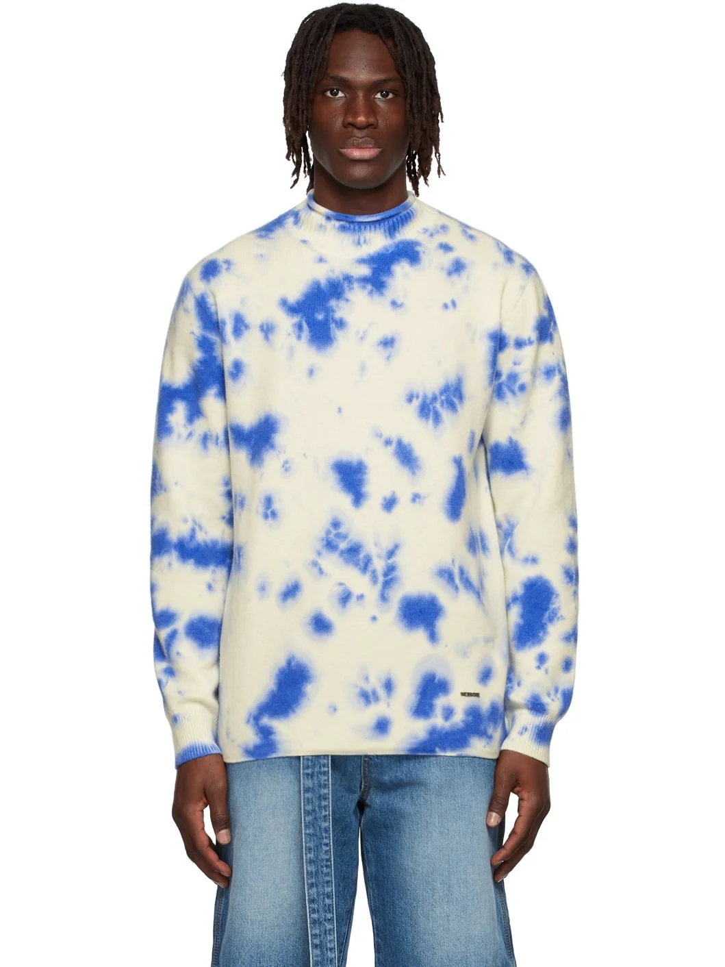 Knit wool and cashmere-blend sweater. Tie-dye pattern throughout. · Logo hardware at hem · Rib knit mock neck and cuffs Supplier color: Blue 70% wool, 30% cashmere.
