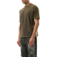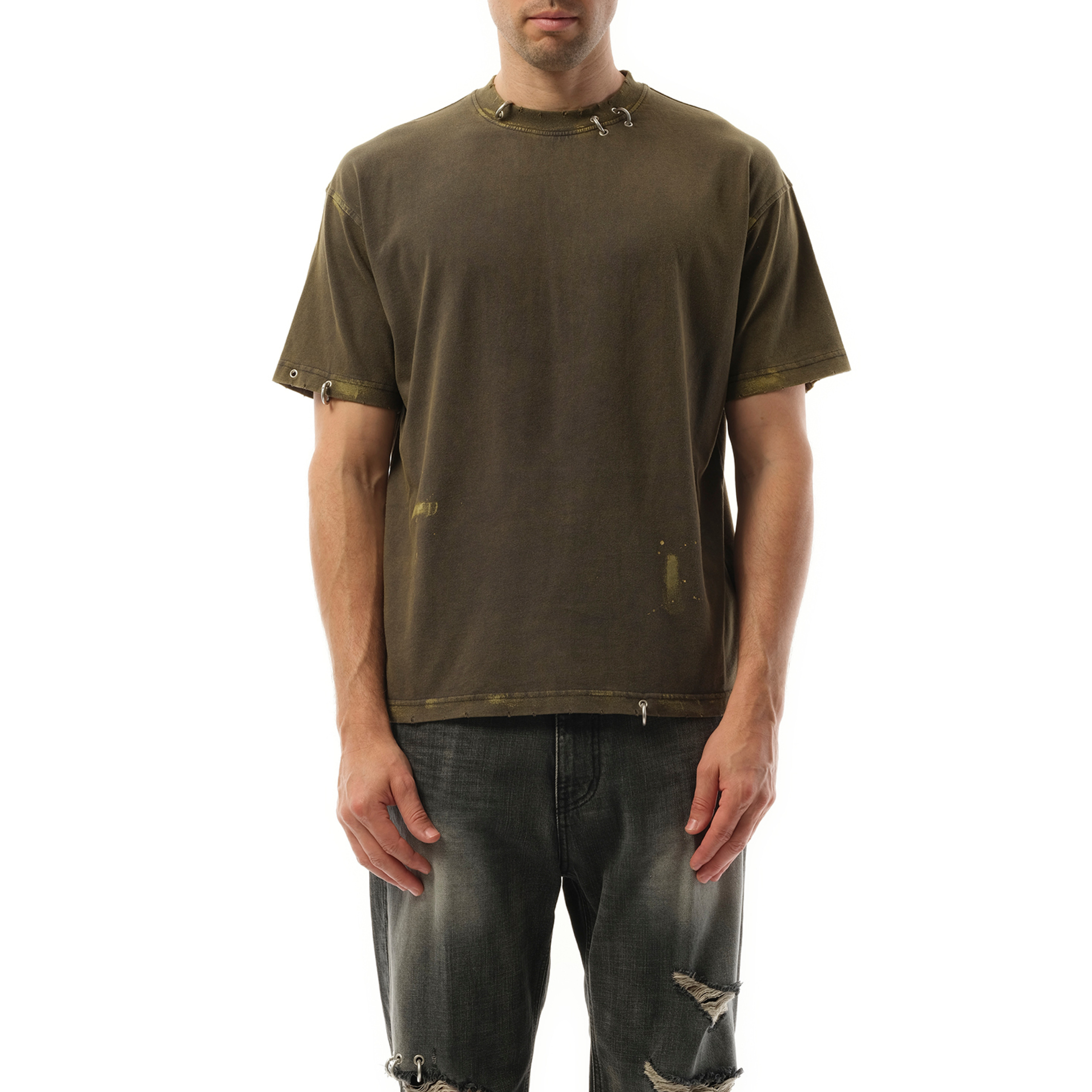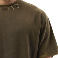 This charcoal shirt features unique, edgy piercings for a bold and stylish look. Made with high-quality materials, it's comfortable and durable. Perfect for making a statement and standing out from the crowd. - Composition: 100% Cotton - Detachable rings with eyelets - Logo embroidery on the rear - Distress look all over - Made in South Korea Model is 192 cm and wears size M SKU: WDTT025770UCH