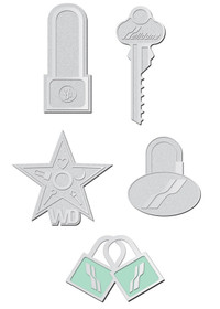 Pack of five metal pins with original designs from We11done.