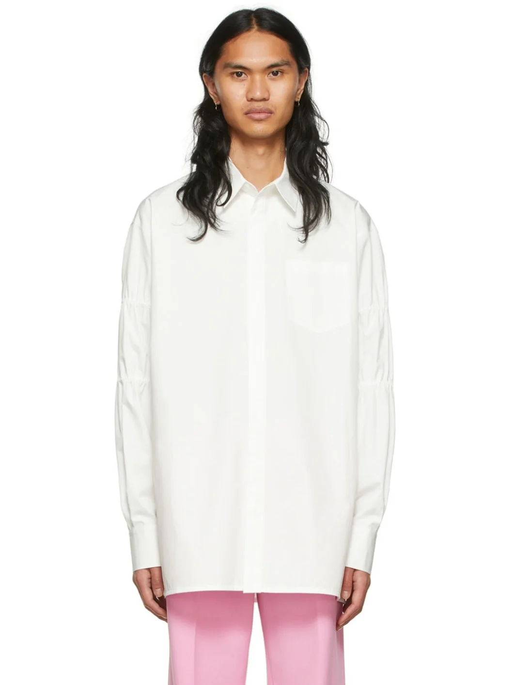 Cotton poplin shirt. · Spread collar · Concealed button closure · Patch pocket · Gathering at sleeves · Single-button barrel cuffs Supplier color: White 100% cotton. Made in South Korea 221327M192007