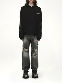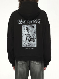 WE11DONE's Punk Teddy Hoodie in Black is a bold statement piece that combines edgy style with cozy comfort. Elevate your streetwear collection with this unique hoodie that stands out in any crowd. - Composition: Cotton 100% - Striking punk-inspired graphic design - Relaxed fit for ultimate comfort - Adjustable drawstring hood - Ribbed cuffs and hem for a snug fit - Front kangaroo pocket for convenience Model is 187 cm and wears size M SKU: WDTH125818UBK