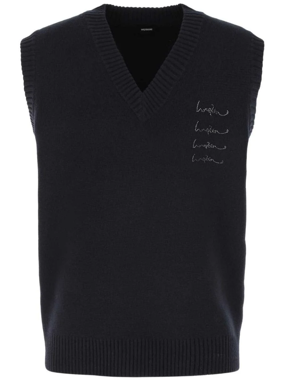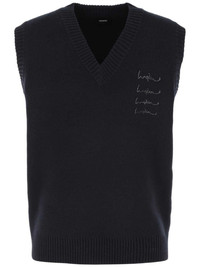logo-embellished vest Highlights - Navy blue - Cotton blend - Fine knit - Ribbed-knit edge - Logo embellishment - Rhinestone embellishment - Applique logo - V-neck - Sleeveless - Straight hem Imported Composition Cotton 60%, Nylon 35%, Cashmere 5% Washing instructions Read Manufacturer Guidelines