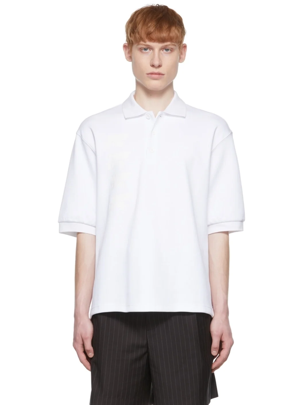 Cotton and polyester-blend pique polo. · Three-button placket · Logo flocked at chest · Logo printed at front · Vented side-seams · Rib knit spread collar and cuffs Supplier color: White Body: 88% cotton, 12% polyester. Trim: 90% cotton, 10% polyurethane. Made in South Korea 221327M212001
