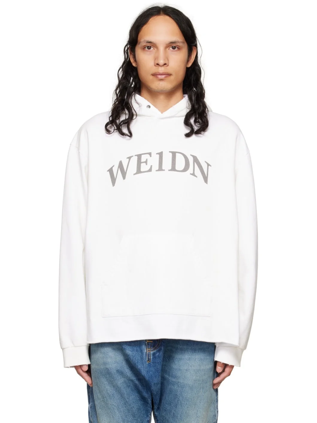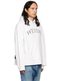 French terry hoodie. Distressing throughout. · Logo printed at front · Kangaroo pocket · Raw edge at hem · Rib knit cuffs · Rubberized logo patch at back hem Supplier color: White 100% cotton. Made in South Korea 222327M202024