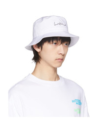 Cotton twill bucket hat in white featuring crystal-cut logo graphic in black throughout. · Quilted brim · Crystal-cut logo in black at back face · Satin lining Supplier color: White 100% cotton. Made in South Korea 221327M140007