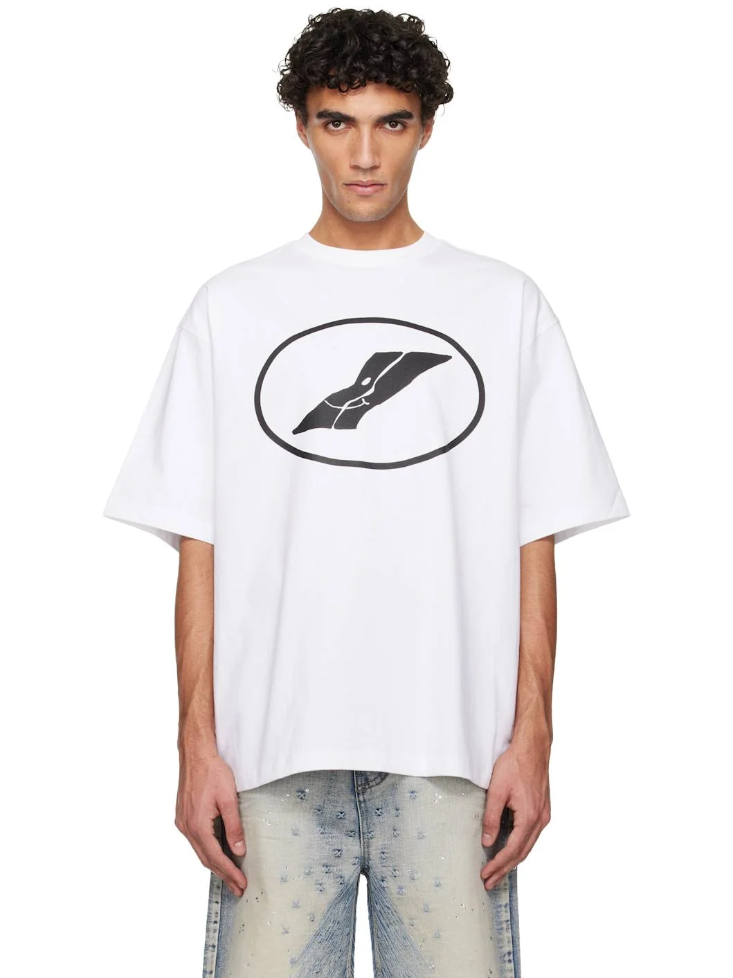 Cotton jersey T-shirt. · Oversized-fit · Rib-knit crewneck · Logo graphic printed at chest · Rubber logo patch at back hem Supplier color: White 100% cotton. Made in South Korea 261327M213044