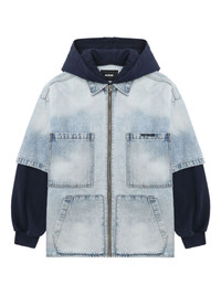 zip-up hooded denim jacket