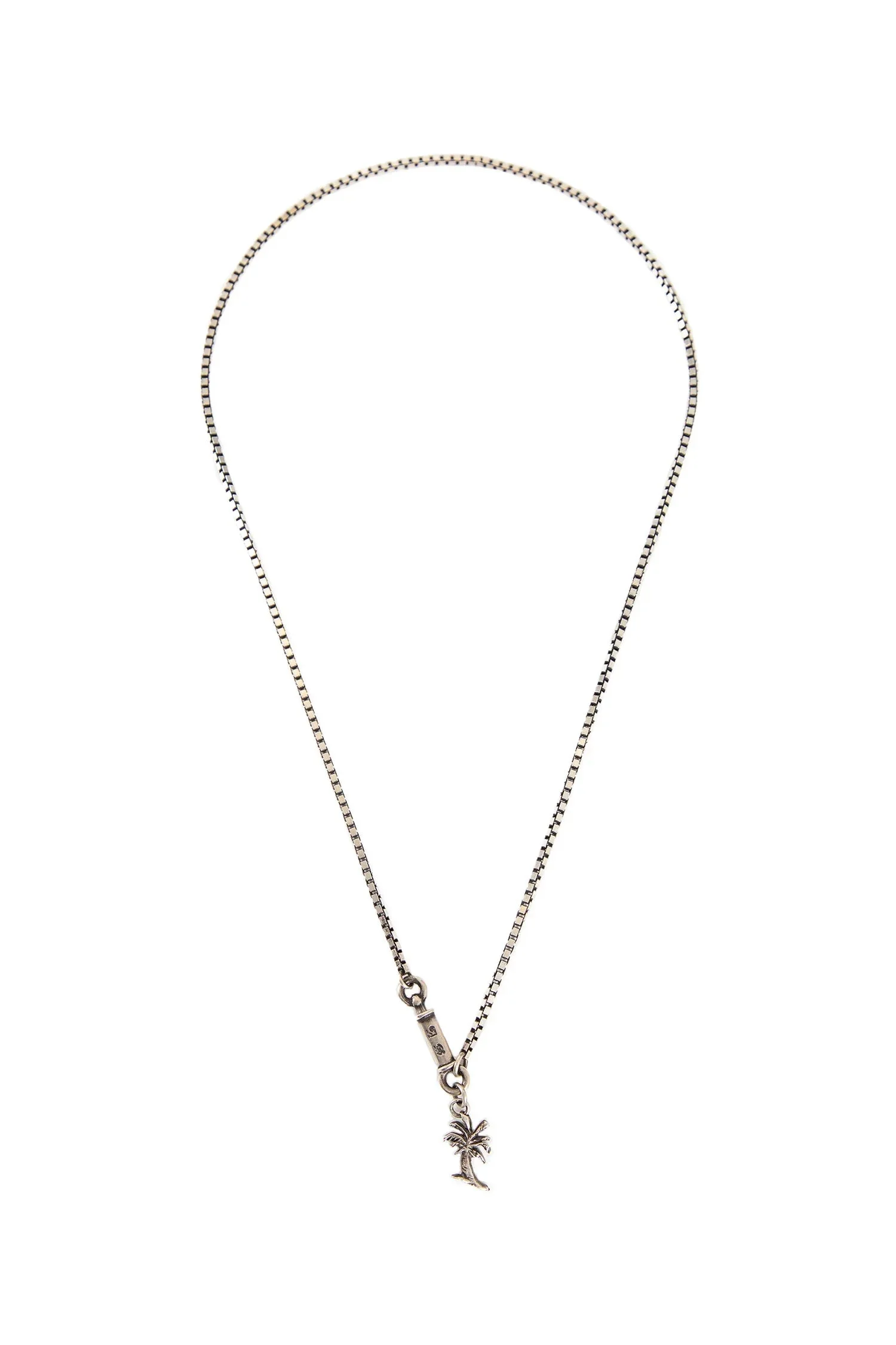 DESCRIPTION - antique silver - geometric chain - palm pendant - signature twisting bayonet closure - The unpolished surface is intentional, with original marks of the tools left visible. DETAILS - Made in: Germany - Composition: 100% Sterling Silver - Model code: M3711PALM - Item ID: 8948772241750