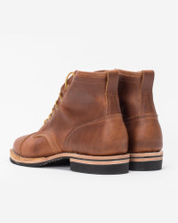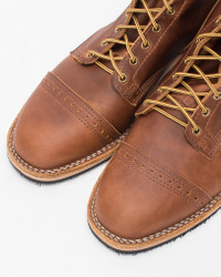 Based on Wesco’s® Hendrik design, the “Guildsman” (formerly known as the “Alex”) is a custom collaborative design between Alex Padmore of Iron Heart International and Chris Warren of Wesco® Boots. Handmade in Oregon, USA, each boot is cut from hardwearing British tie domain leather, paired with a steel-reinforced Vibram sole for durability. A brogue-style toe cap adds a refined touch for more formal wear, while the dry leather can be polished to a high shine or left to age with a natural patina. Made by Wesco® Boots Traditional work and engineer boots from the USA, handcrafted in Scapposse, Oregon. Wesco® Guildsman (IHWE-GLMN-TAN) - Features & Construction - Iron Heart International x Wesco® collaboration - 7" lace-up boot built on the MP95 last - British tan domain custom 'Hendrik' with dress toe cap (brogue) - Black #269 Vibram sole - 1" heel - Natural midsoles and heel - Standard lower heel height - Solid brass hardware - Lightweight brown upper stitching - White nylon outsole stitching - Leather inserts Domain Cowhide - Cowhide is one of the most widely used leathers, offering a balance of durability and flexibility. It has a slightly looser grain than horsehide, giving it a softer hand and a bit more give, while still offering excellent wear resistance - Over time, cowhide will develop character through creasing, subtle color changes, and patina — especially in full-grain and vegetable-tanned versions. It’s generally more forgiving than horsehide and less prone to cracking, though it can still dry out if neglected - Conditioning helps maintain suppleness and prevent drying or stiffening. Apply a small amount of neutral leather conditioner when the leather starts to feel dry or loses its luster — usually every 6–12 months depending on use. Work the conditioner in with a soft cloth and buff off any excess to avoid buildup, which can dull the surface or attract dirt - For cleaning, wipe with a dry or lightly dampened cloth to remove dust and grime. For more stubborn dirt, a small amount of mild soap can be used with water — just make sure to test on a hidden area first. Never soak the leather. If the leather gets wet, blot gently and allow it to dry naturally at room temperature, away from heat sources, then condition if needed to restore moisture