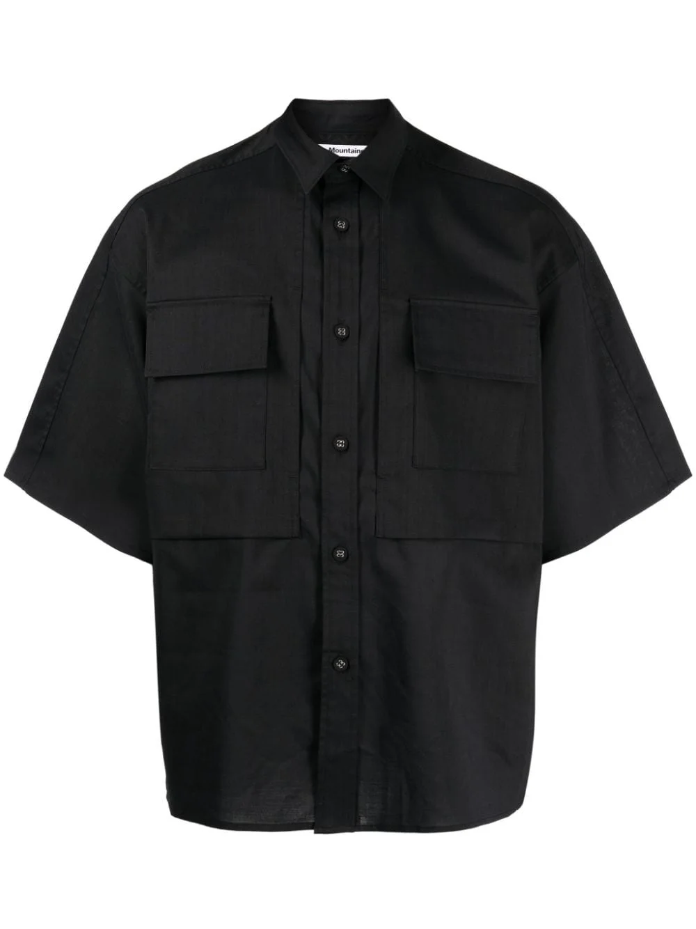 chest-pockets button-up shirt Highlights - Black - Tonal stitching - Side stripe detailing - Classic collar - Front button fastening - Short sleeves - Chest flap pockets - Straight hem Imported Composition Polyester 79%, Ramie 21% SIZE & FIT Model measurements Height 6 ft 3 in(1.9 m) Bust/Chest 35.03 in(89 cm) Hips 36.61 in(93 cm) Waist 29.13 in(74 cm) FittingInformation Designed for a boxy fit, intended for a loose fit throughout Made from a midweight non-stretch fabric This piece fits true to size – take your usual size Washing instructions Hand Wash