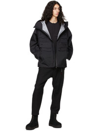 Long sleeve Gore-Tex® jacket in black. Taped seams throughout. · Water-repellant and wind-resistant · Bungee-style drawstring at hood · Two-way zip closure · Zip pockets at chest · Zip pockets and welt pockets at waist · Bungee-style drawstring at hem · Raglan sleeves · Adjustable Velcro tab at cuffs · Unlined Supplier color: Black Body: 100% nylon. Trim 1: 100% polyester.