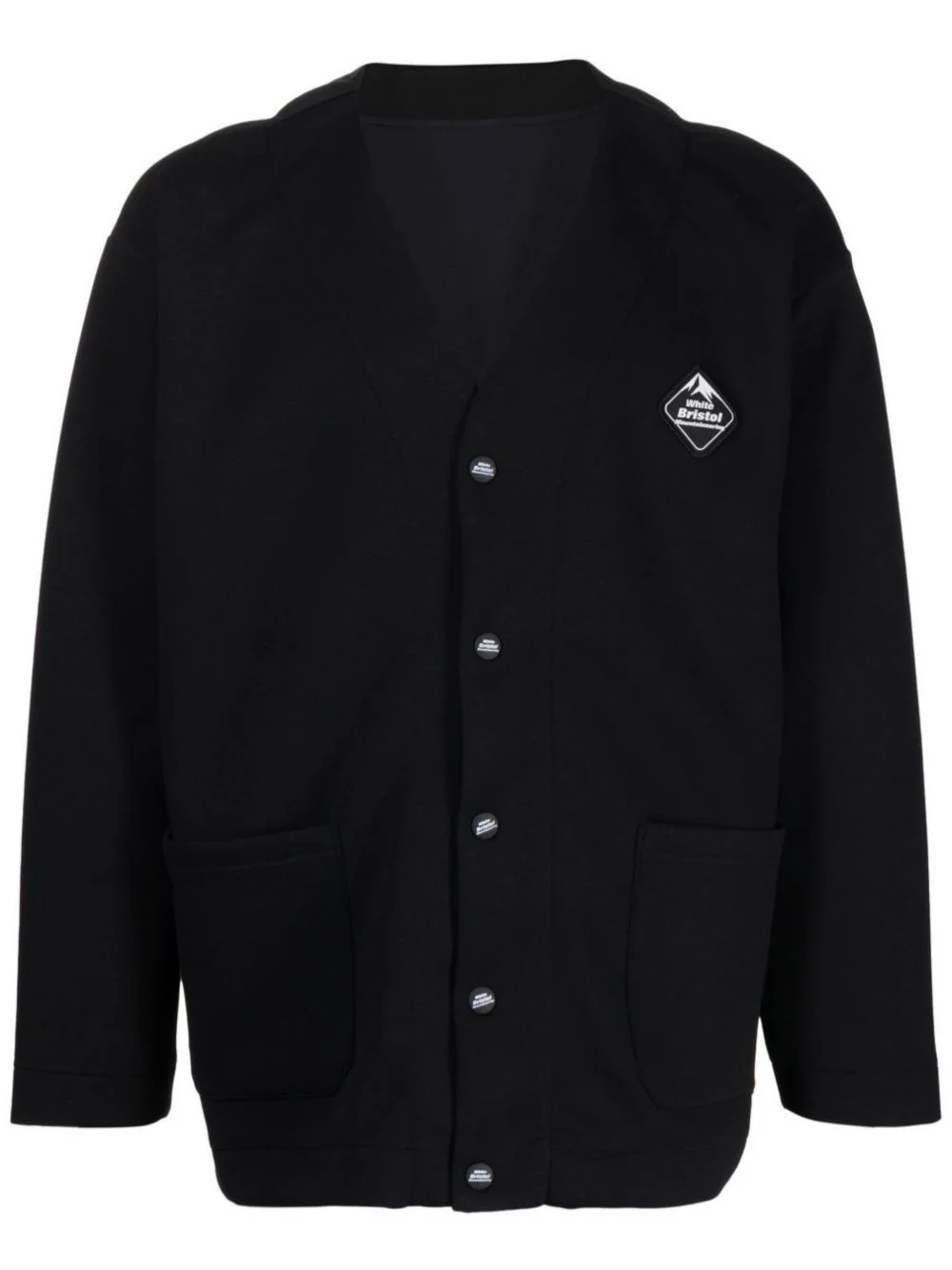 logo-patch cardigan Highlights - Black - Front press-stud fastening - Ribbed v-neck - Two front patch pockets Made in Italy Composition Cotton 100%