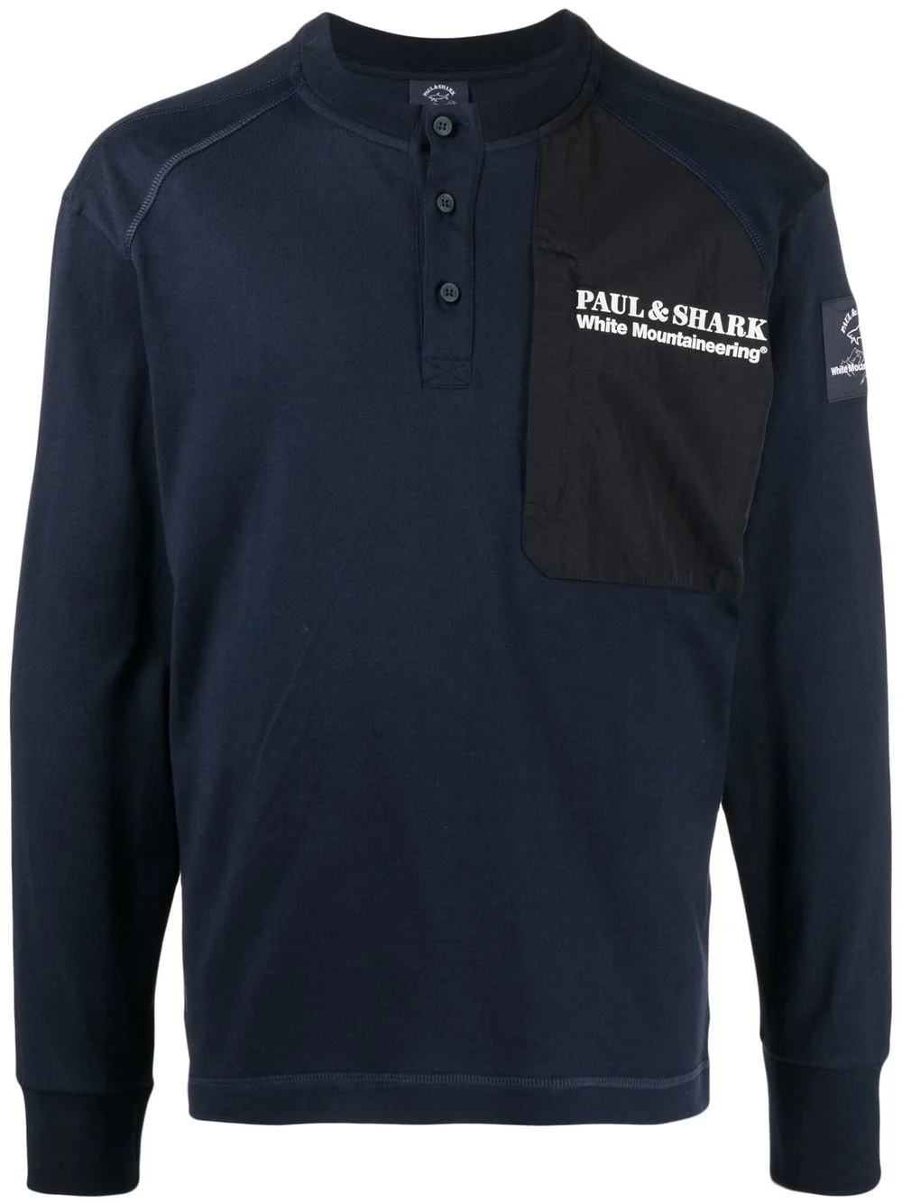 logo-print panelled T-Shirt navy blue cotton jersey knit panelled design logo print to the front logo patch at the sleeve crew neck long sleeves fitted-cuff sleeves straight hem Imported Composition Body: Cotton 100% SIZE & FIT Model measurements Height 6 ft 3 in(1.9 m) Bust/Chest 34.64 in(88 cm) Hips 36.61 in(93 cm) Waist 27.55 in(70 cm) FittingInformation This piece fits true to size. We recommend you get your regular size Cut for a relaxed fit Made with a mid-weight fabric Washing instructions Machine Wash