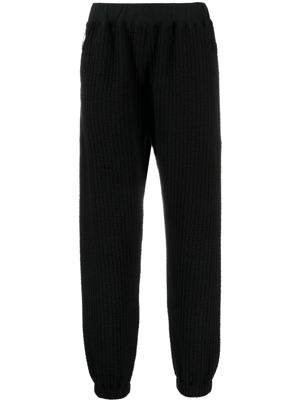 ribbed track cotton-blend pants black cotton blend ribbed detailing elasticated waistband side slit pocket two rear patch pockets elasticated ankles Imported Composition Cotton 61%, Polyester 38%, Polyurethane 1% SIZE & FIT Model measurements Height 6 ft 1 in(1.85 m) Bust/Chest 35.82 in(91 cm) Hips 37.79 in(96 cm) Waist 29.13 in(74 cm) FittingInformation This piece fits true to size. We recommend you get your regular size Cut for a slim fit Made with a mid-weight fabric Washing instructions Hand Wash