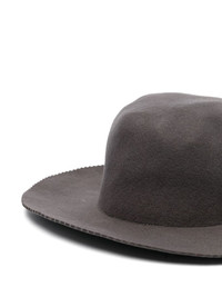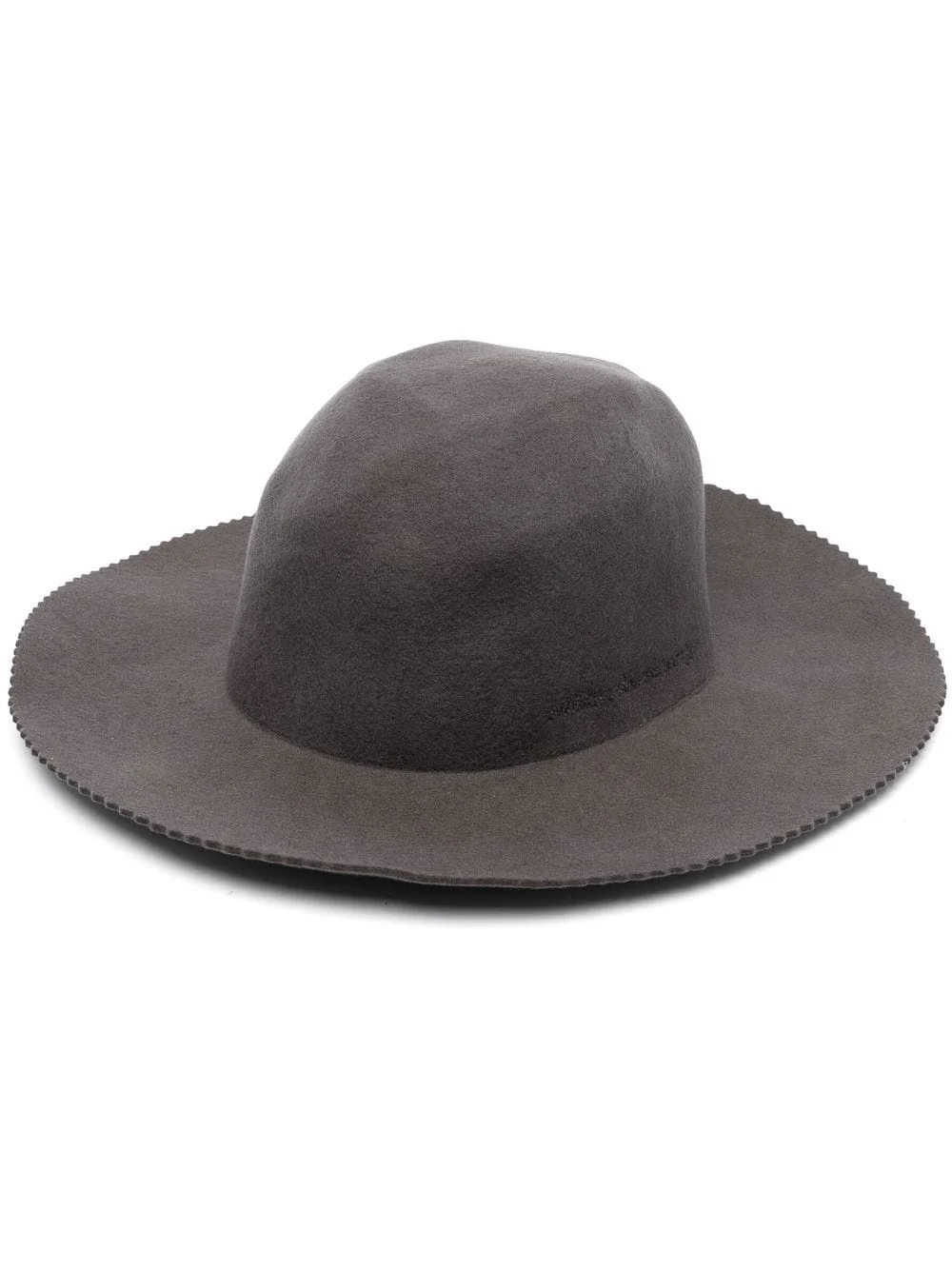 scallop-edge fedora hat Highlights - Dark grey - Wool felt - Scallop edge - Embroidered logo to the side - Wide brim - Round crown Imported Composition Wool 100% SIZE & FIT Measurement BRIM 3.54 in(9 cm) CIRCUMFERENCE 22.04 in(56 cm)