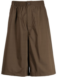 straight-leg elasticated shorts Highlights - Brown - Tonal stitching - Elasticated waistband - Button fly fastening - Straight leg - Two rear welt pockets - Straight hem - Knee-length Imported Composition Body: Nylon 100% Polyester 100% Washing instructions Hand Wash