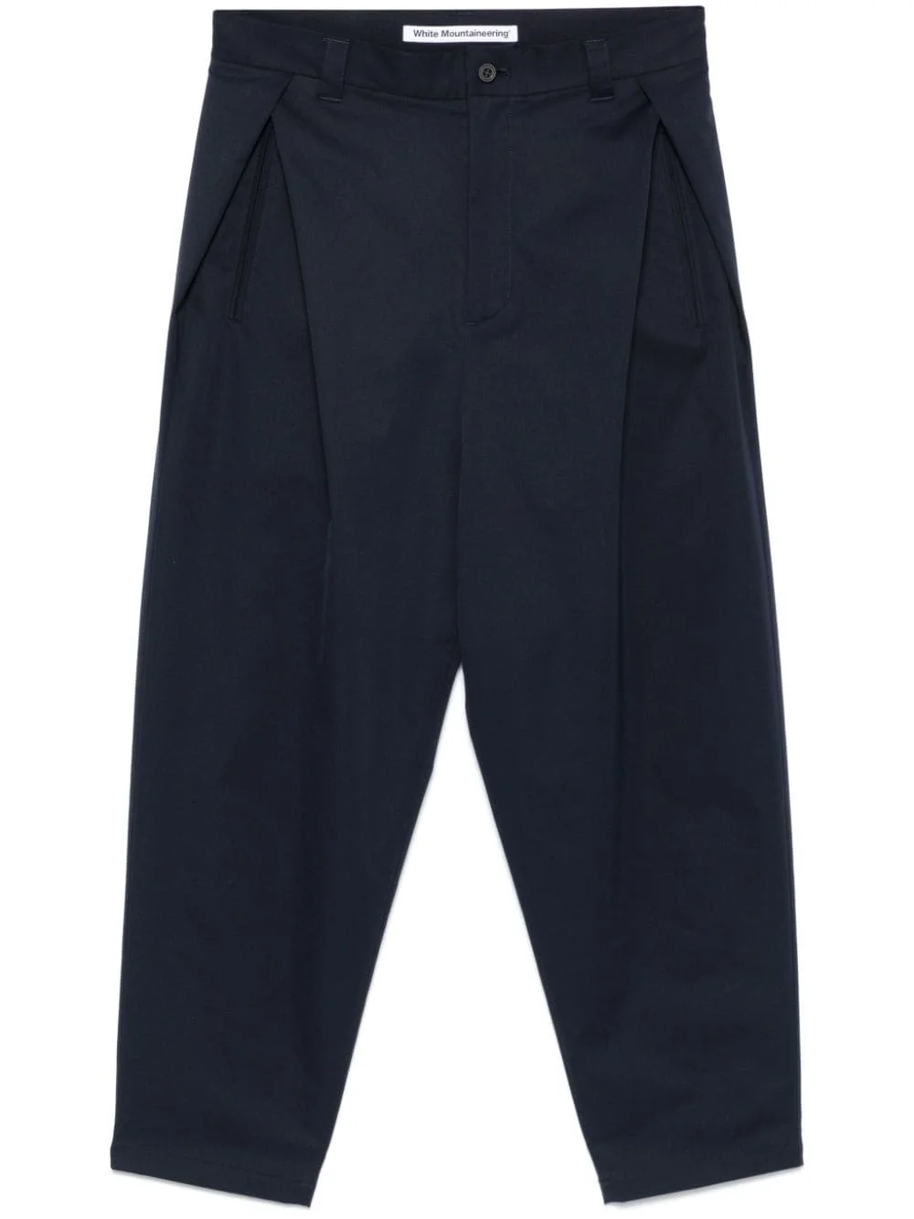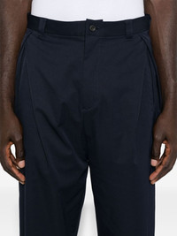 tapered trousers Highlights - Navy blue - Cotton - Twill weave - Tapered leg - Concealed zip fly and button fastening - Internal drawstring fastening waist - Side pleat detailing - Two side slit pockets - Applique logo to the back - Two rear button-fastening jetted pockets - Ankle-length Imported Composition Outer: Polyester 100% Cotton 100% SIZE & FIT Model measurements Height 6 ft 2 in(1.87 m) Bust/Chest 36.41 in(92.5 cm) Hips 37 in(94 cm) Waist 29.52 in(75 cm) FittingInformation Designed for a tapered leg, offering a loose unrestricted fit over the leg with a closer fit towards the ankle Made from a midweight non-stretch fabric