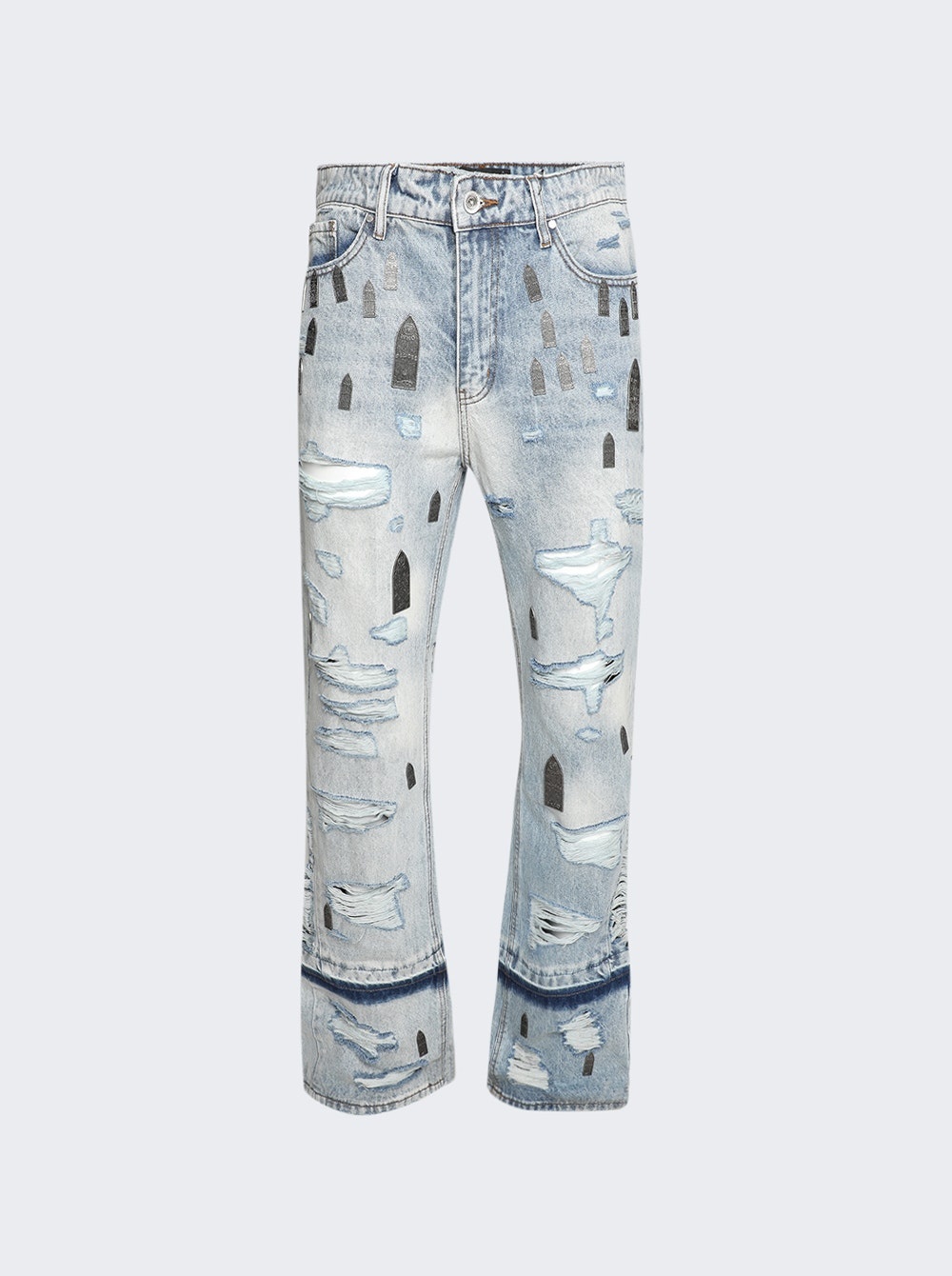 Details - Five-pocket design - Belt loops - slim-straight fit with slight flare - Distressing and steel riveted studs throughout Dimensions: Model is 6'1"/185cm and is wearing a size US32 Composition: 100% Cotton Care: Care according to label Brand Style: 1120800008SS24 Designer/Brand: WHO DECIDES WAR