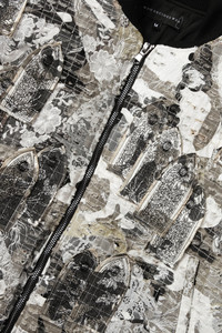The Artic Boro Bomber is sure to become a part of your style. Made with 100% cotton, this jacket features the traditional bomber fit with original stained-glass embroidered patchwork on both sleeves. The base layer is constructed of our signature boro technique and is washed to give it a treated frayed effect. If you are trying to decide on a size, you can follow your normal size for a standard fit. Processing takes 1-2 days, shipping in the US 3-4 days, internationally 7-10 days.
