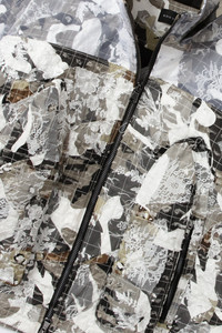 The Artic Sport Jacket is sure to become a part of your style. Made with 100% cotton, this jacket features a traditional fit paired with our signature stained glass cargo pockets. Organza is present covering the top panels of both sleeves and shoulders. The base layer is constructed of our signature boro technique and is washed to give it a treated frayed effect. If you are trying to decide on a size, you can follow your normal size for a standard fit. Processing takes 1-2 days, shipping in the US 3-4 days, internationally 7-10 days.