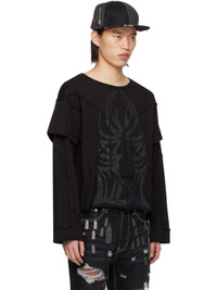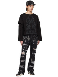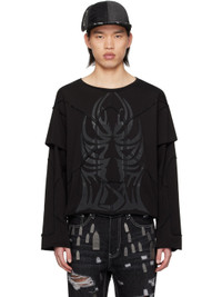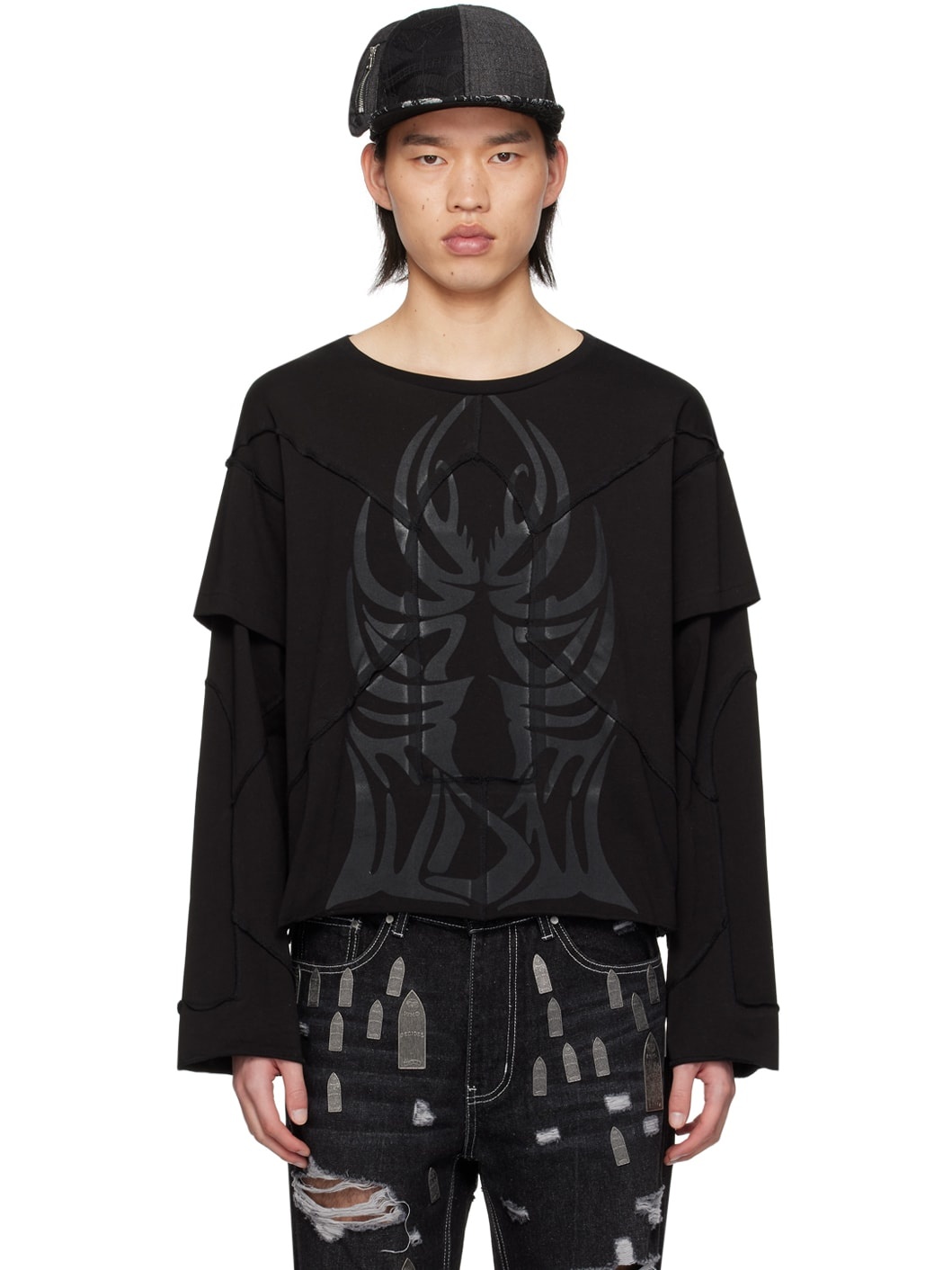 Cotton jersey T-shirt. Inverted seams throughout. · Layered and paneled construction · Rib knit crewneck · Logo graphic printed at front and back · Rolled edge at hem and cuffs · Dropped shoulders Supplier color: Coal