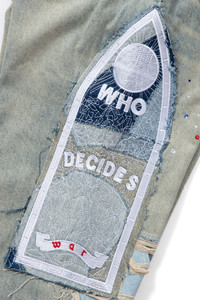 The Blown Denim are comprised of 100% cotton with a slightly slim fit. The pants feature an inseam of 35.5 inches and are embellished with embroidered patches throughout. Follow your normal size. Processing takes 1-2 days, shipping in the US 3-4 days, internationally 7-10 days.