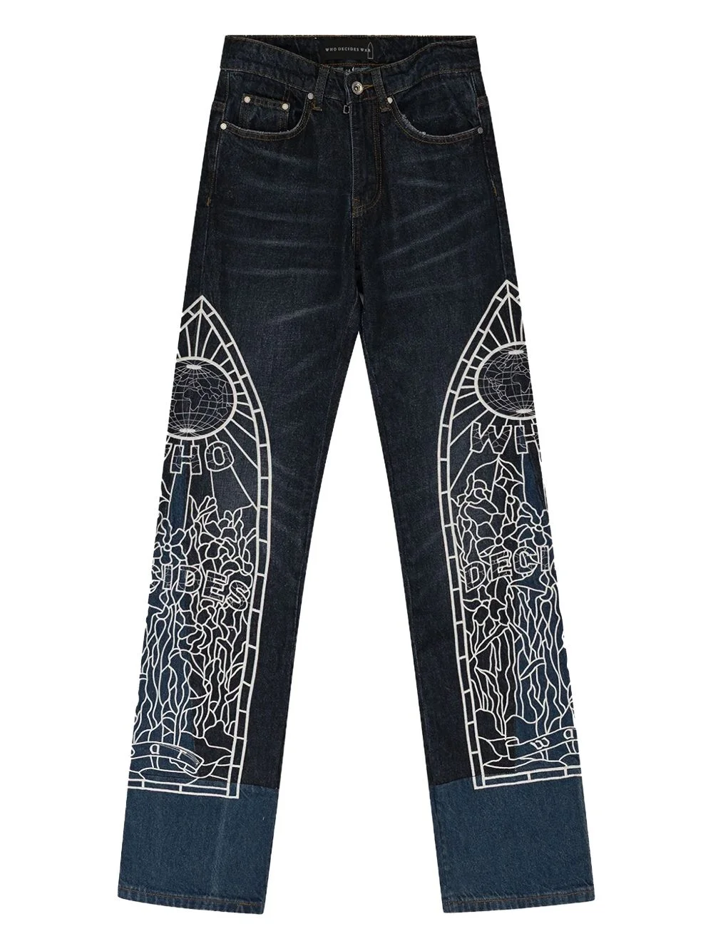 embroidered jeans Highlights - Dark blue - Graphic design - Five pockets - Belt loops Imported Composition Fabric 100% Washing instructions Read Manufacturer Guidelines
