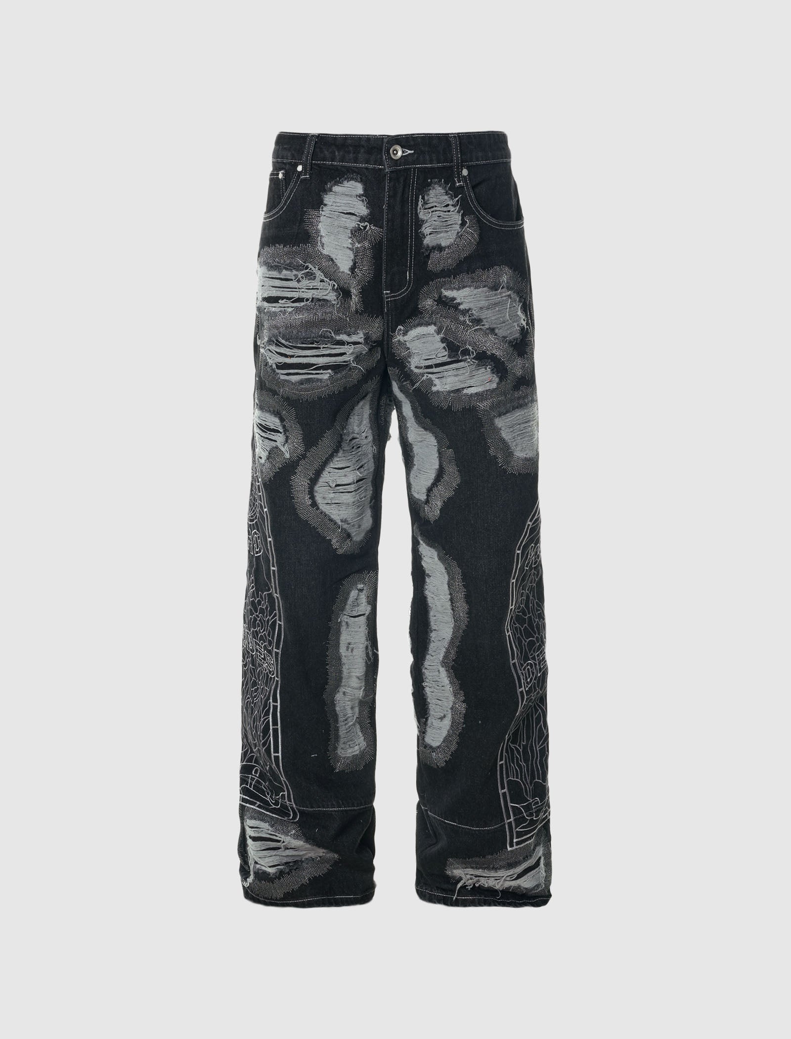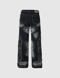 Regular-fit non-stretch denim jeans. Five-pockets. Embroidered logo graphics at outseams. Fading, distressing, laddering and contrast stitching throughout. Zip-fly closure at front. - 100% Cotton SKU: 1120630002SS24-COAL
