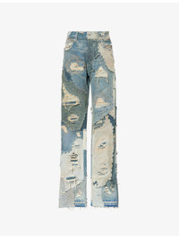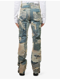 PRODUCT DETAILS - WHO DECIDES WAR BY EV BRAVADO denim jeans - 100% cotton - Button and zip-fly fastening - Relaxed fit, wide straight leg, belt loops, five pockets, all-over multi-wash distressed patchwork denim - Machine wash cold - True to size - Size 30: rise 11in / 28cm, inside leg 36in / 91.5cm leg opening 18in 45.5cm - Model is 6ft 2in/1.88m and wears a size UK 30 - Heavyweight, non-stretch Ref: R04556672