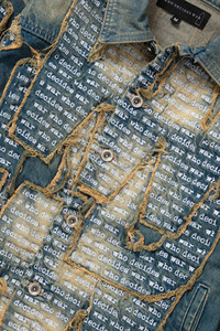 The WDW Overlay Jacket is 100% cotton and features traditional fit with embroidered frayed patchwork on denim. Follow your normal size. Processing takes 1-2 days, shipping in the US 3-4 days, internationally 7-10 days.