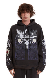 The Epitome Hooded Pullover is constructed from 100% cotton, and features original artwork applied by screen print and embroidery. With intentional distressing and design placement this adds a distinctive touch. Featuring a boxy and slightly cropped fit, following your normal size is recommended. Processing takes 1-2 days, shipping in the US 3-4 days, internationally 7-10 days.