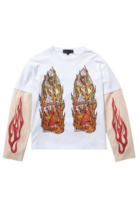 The Flame Glass Double Jersey is constructed from 100% cotton. Featuring faded screen printed flame glass motifs, double layer waffle knit sleeves and a boxy, slightly cropped fit. Following your normal size is recommended. Processing takes 1-2 days, shipping in the US 3-4 days, internationally 7-10 days.