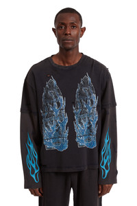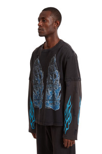 The Flame Glass Double Jersey is constructed from 100% cotton. Featuring faded screen printed flame glass motifs, double layer waffle knit sleeves and a boxy, slightly cropped fit. Following your normal size is recommended. Processing takes 1-2 days, shipping in the US 3-4 days, internationally 7-10 days.