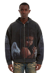 The Sacred Being Zip Up is constructed from 100% cotton. Featuring screen printed stained glass motifs and original artwork with a faded treatment. This zip up has a boxy, slightly cropped fit, following your normal size is recommended. Processing takes 1-2 days, shipping in the US 3-4 days, internationally 7-10 days.
