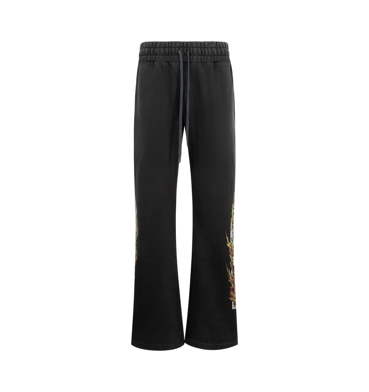 WHO DECIDES WAR Flame Glass Hardware Sweatpants featuring cotton fleece, flared leg, printed with the label's signature stained-glass window motifs, drawstring waistband, side on-seam pockets and back welt pocket. 100% cotton. DESIGNER STYLE ID: 1120820002FW25 COLOR: COAL
