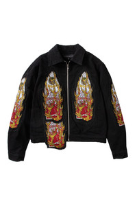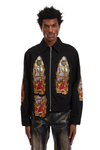 The Flame Glass Trucker Jacket is sure to become a part of your style. Made with 100% cotton, this jacket features the traditional fit with original artwork showcased on 8 stained glass patches. If you are trying to decide on a size, you can follow your normal size for a standard fit. Processing takes 1-2 days, shipping in the US 3-4 days, internationally 7-10 days.