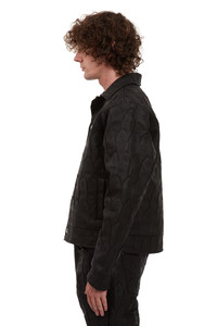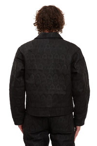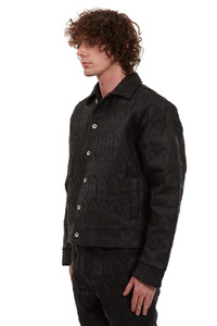 The Flooded Arc Trucker is constructed from 100% genuine cowhide. Embellished with embroidered stained glass patches stacked to emulate scales throughout. With intentional design placement this adds a distinctive touch. Featuring a boxy and slightly cropped fit, following your normal size is recommended. Processing takes 1-2 days, shipping in the US 3-4 days, internationally 7-10 days.
