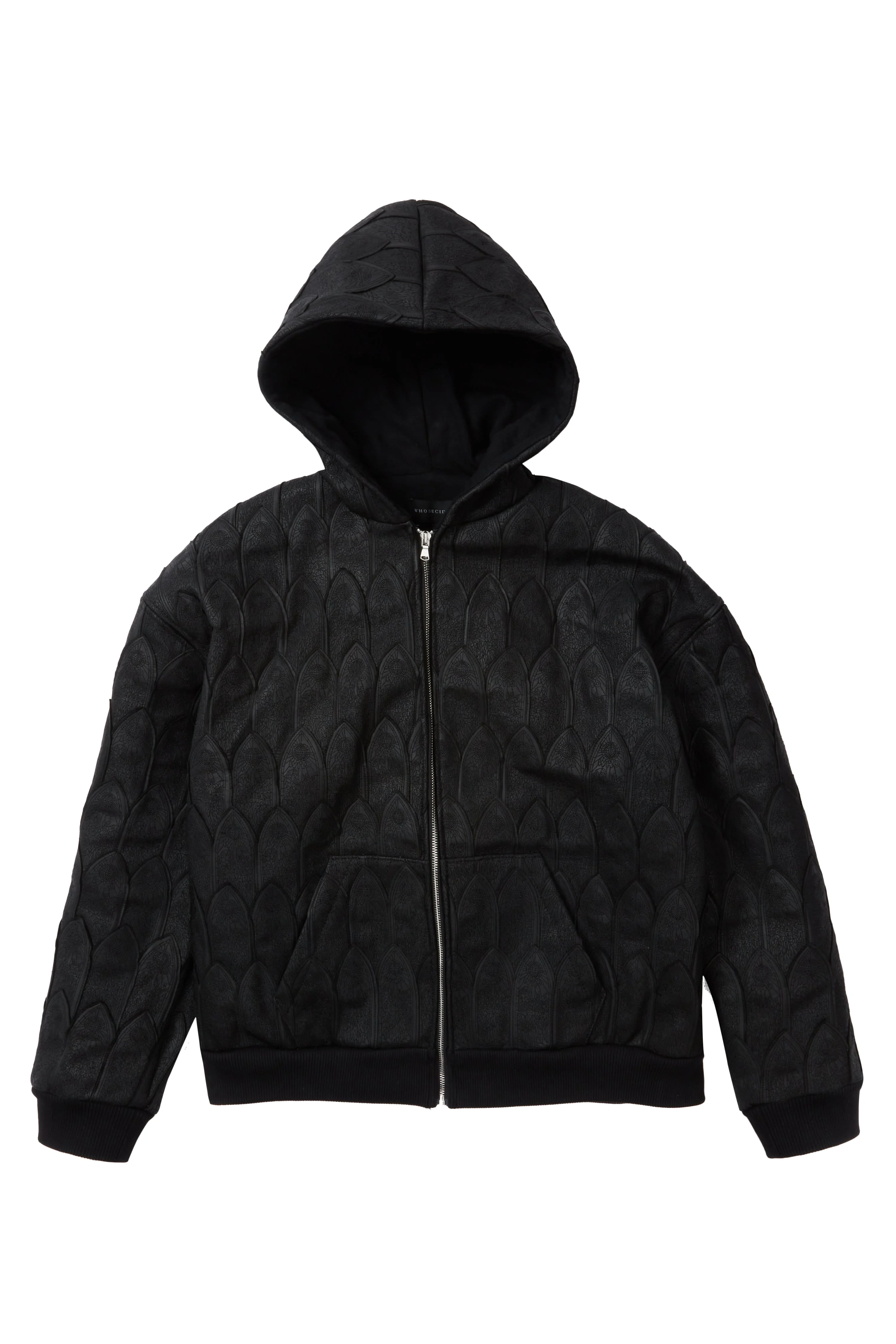 The Flooded Arc Zip Up is constructed from 100% genuine cowhide. Embellished with embroidered stained glass patches stacked to emulate scales throughout. With intentional design placement this adds a distinctive touch. Featuring a boxy and slightly cropped fit, following your normal size is recommended. Processing takes 1-2 days, shipping in the US 3-4 days, internationally 7-10 days.