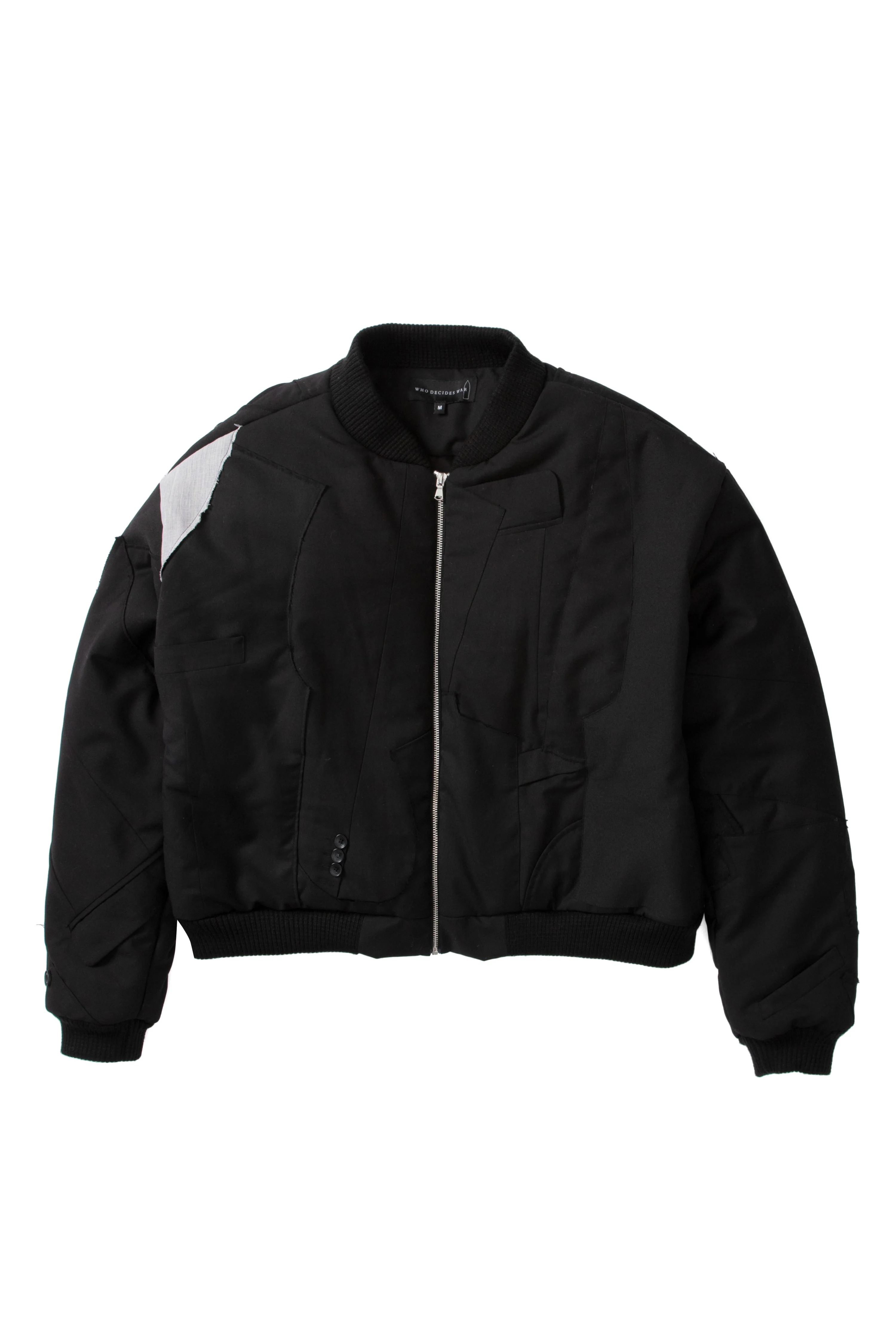 The Fragmented Bomber is 100% cotton with distressed, repaired and repurposed suiting. Features traditional fit throughout. Follow your normal size. Processing takes 1-2 days, shipping in the US 3-4 days, internationally 7-10 days.