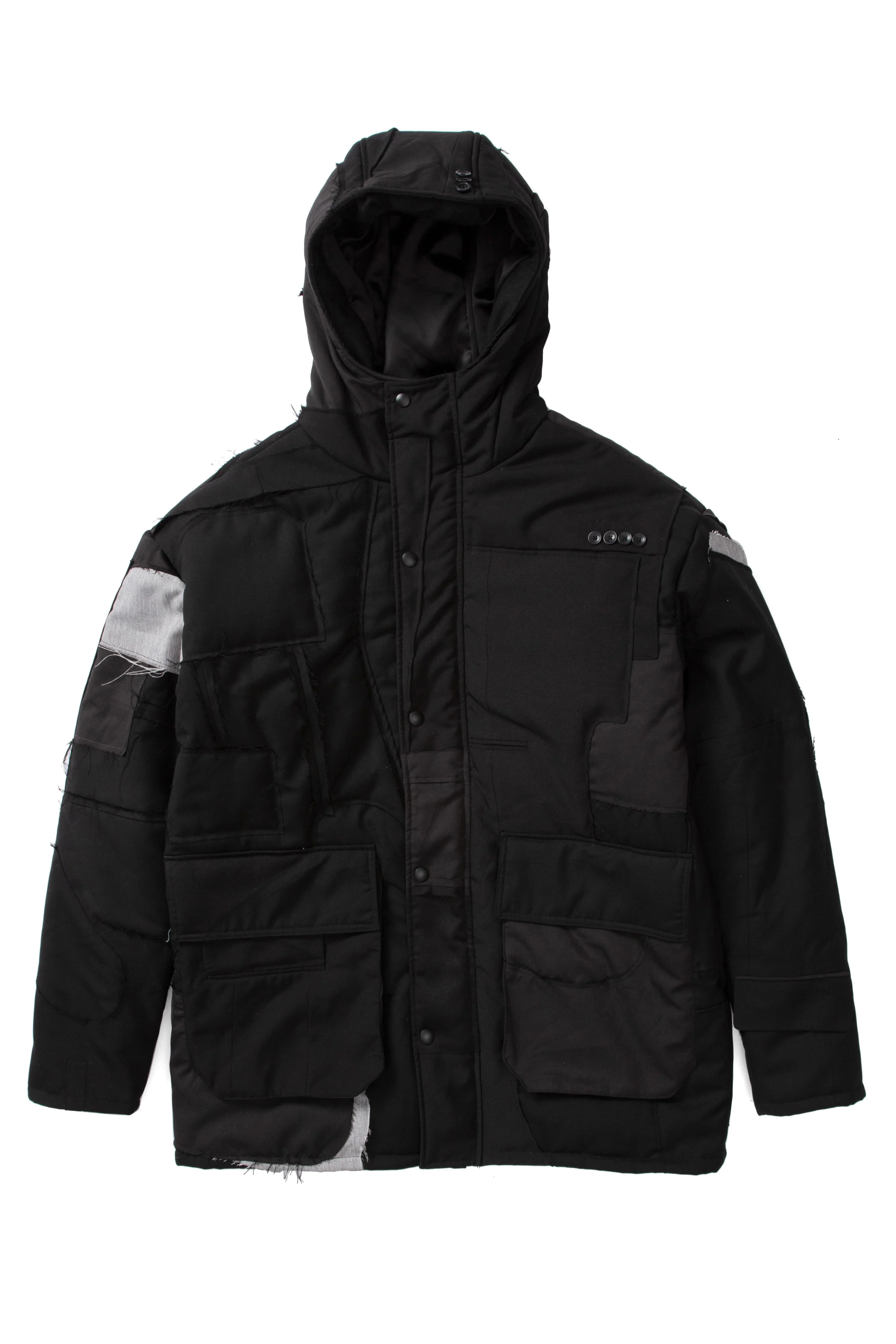 The Fragmented Parka is 100% cotton with distressed, repaired and repurposed suiting. Features traditional fit throughout. Follow your normal size. Processing takes 1-2 days, shipping in the US 3-4 days, internationally 7-10 days.