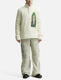 - Who Decides War - Garden Glass Puffed Rugby - Slightly oversized fit - Half-button collar - High neck - Embroidery embellishment at front - Fully lined - Zip side slit - Straight hem - Color: Ivory - Material: 40% Acrylic, 30% Wool, 30% Nylon - See more Knitwear and Clothing SIZING - Model wears size M - Model measures: Height 188cm, Chest 38”/96cm, Waist 29”/74cm, Hip 37”/94cm