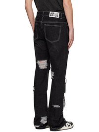 Non-stretch denim jeans. Fading, whiskering, distressing, and laddering throughout. · Paneled construction · Belt loops · Five-pocket styling · Zip-fly · Leather logo patch at back waistband · Contrast stitching in gray Supplier color: Coal