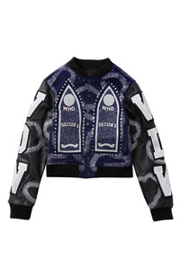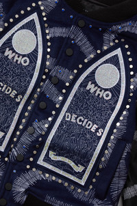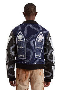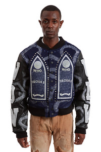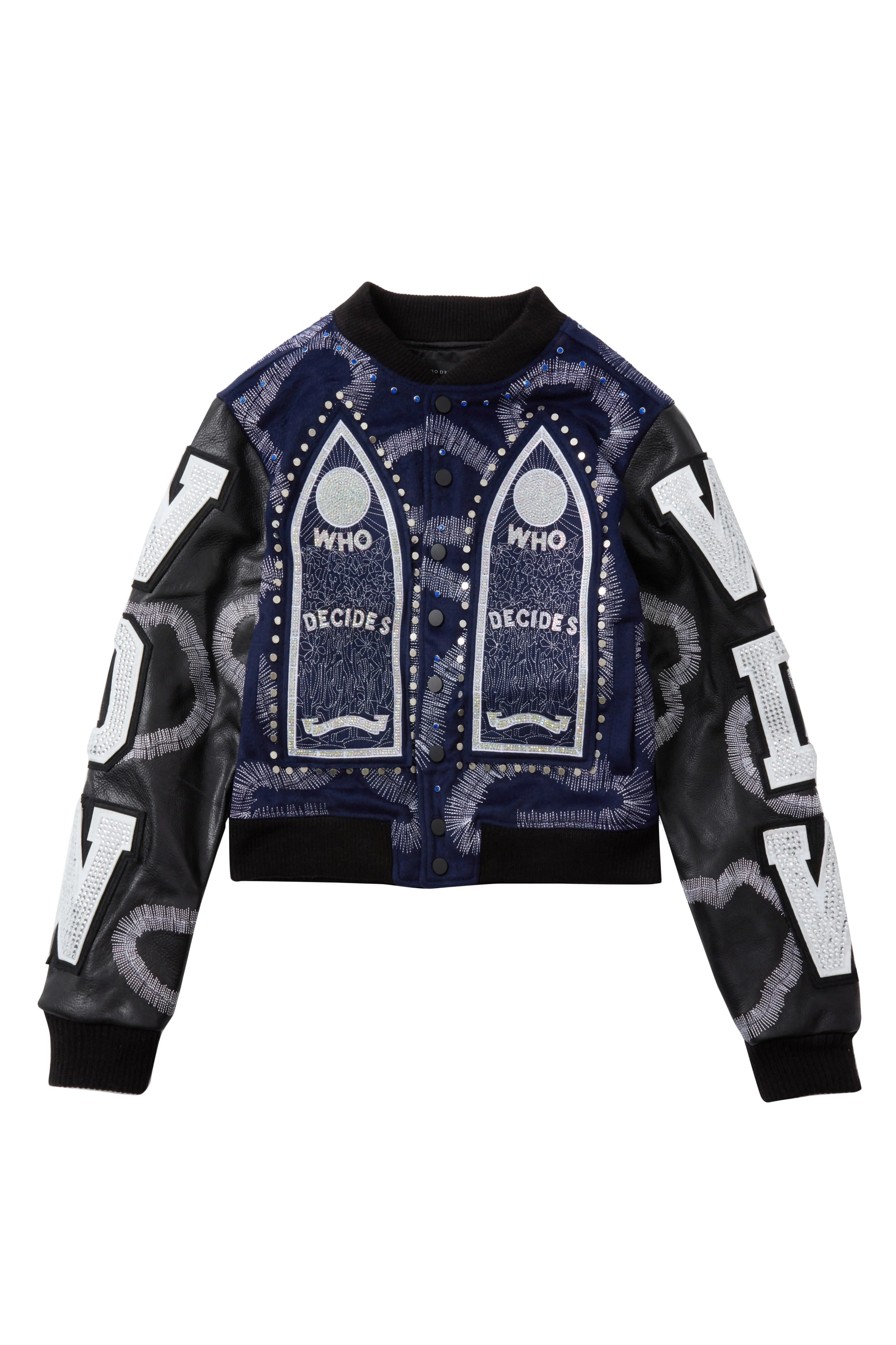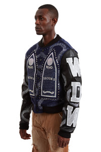 The Hardware Cathedral Varsity is a wool blend with 100% authentic cowhide sleeves, embellished with stained glass embroidered patches, darning, rhinestones and studded accents throughout. Following your normal size is recommended. Processing takes 1-2 days, shipping in the US 3-4 days, internationally 7-10 days.